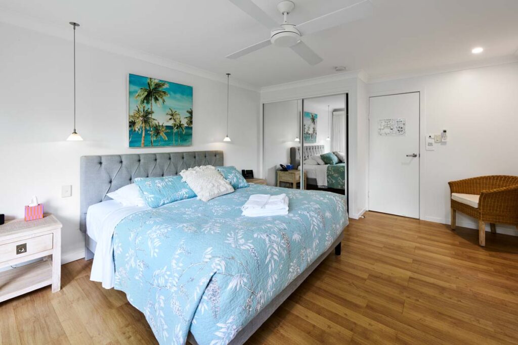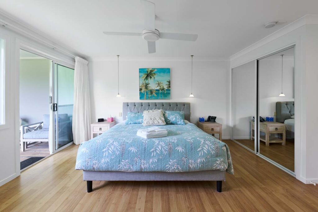 Located in Hibiscus House, these superior rooms offer a luxurious retreat. Each room features a plush king bed, bright ensuite bathroom, and a private veranda with outdoor seating to enjoy the fresh air. Designed for comfort and relaxation, these rooms provide a peaceful getaway, while the shared laundry ensures convenience during your stay. Experience a perfect blend of luxury and tranquillity in our Hibiscus House rooms, ideal for couples as a restful and rejuvenating escape.