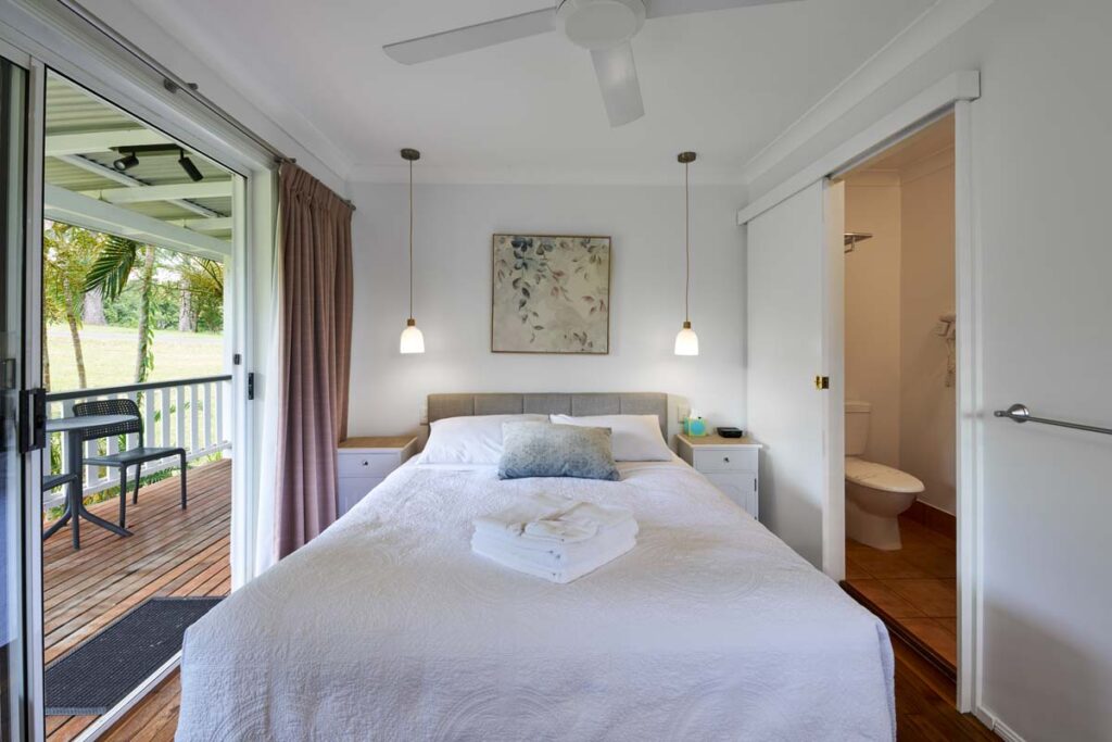Quality Queen Rooms provide a bright and comfortable retreat, featuring queen beds and private bathrooms. Each room opens onto spacious decks, ideal for soaking up the sun and enjoying the beautiful surroundings. Conveniently located within the same building, laundry facilities ensure a hassle-free stay. Although there’s a moderate slope on the walk to the Main Centre, these rooms offer a peaceful, inviting space for rest and relaxation, with stunning views of the valley. These rooms are ideal for couples or solo travellers seeking a peaceful retreat.